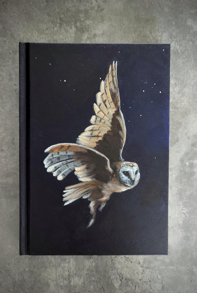 DĂ©couvrez une piĂšce artistique singuliĂšre : une peinture originale rĂ©alisĂ©e Ă la main sur la couverture dâun carnet format A5 (pages blanches).